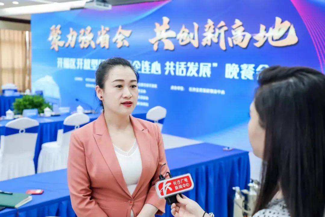 Recently, Kaifu District's open economy 'government and enterprise talk about development' dinner meeting was held in Changsha Jinxia Economic and Technological Development Zone.Luo Yuhuan, secretary of the Kaifu District Party Committee, joined hands with Xingsha Customs, Kaifu Taxation Bureau, financial institutions, Jinxia Park, etc., to have dinner with representatives of entrepreneurs to discuss the road to high-quality development.Lin Haiying, director and executive deputy general manager of Hunan Caisheng International Trade Co., Ltd., was invited to participate.