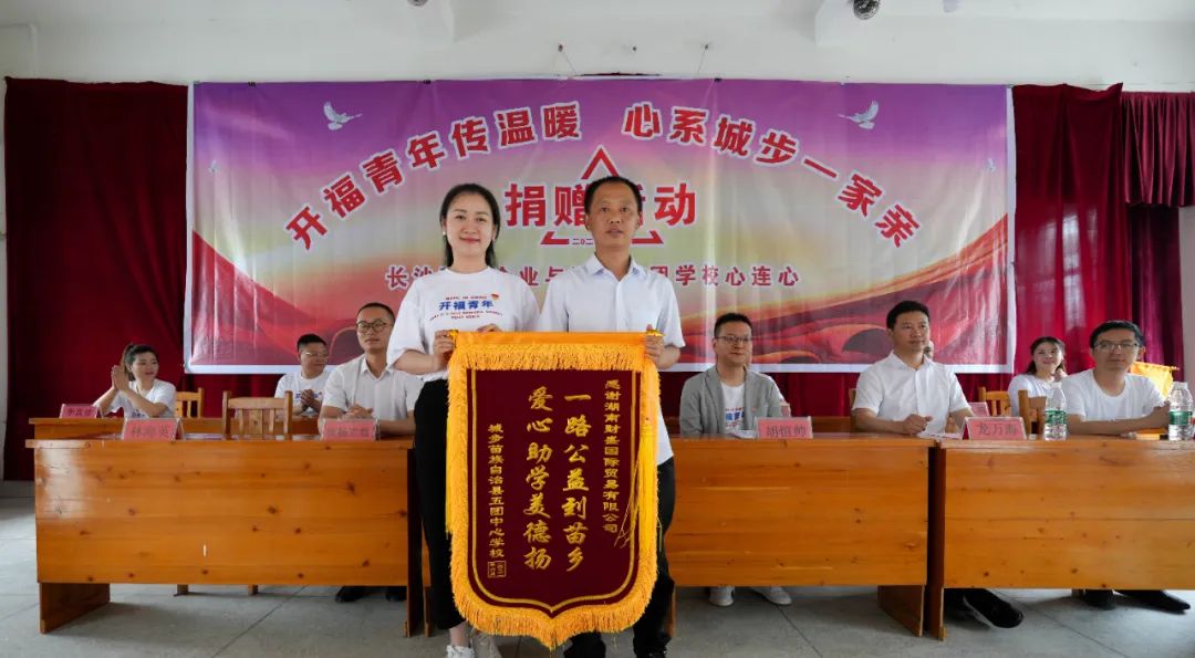 On June 10th, following the 'Kaifu Youth Spreading Warmth and Care for the City' by Changsha Jinxia Bonded Logistics Center, Kaifu District Agriculture and Rural Bureau, Kaifu District Education Bureau, Kaifu District Committee of the Communist Youth League, and Kaifu District Youth Volunteer Association A 'love' donation team, Hunan Caisheng International Trade Co., Ltd. once again visited the second donated school in Shaoyang Chengbu Miao Autonomous County - Wutuan Town Central School.