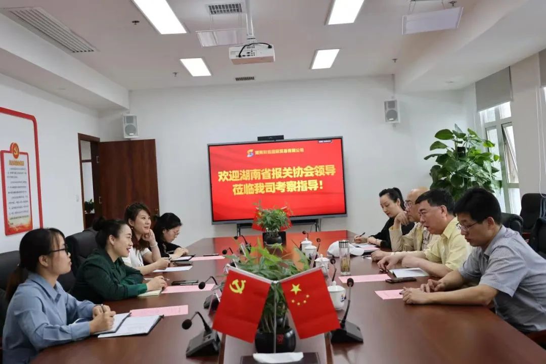 Recently, Qi Xiansheng, President of Hunan Provincial Customs Brokers Association, Xie Ning, Consultant, Deng Hongwei, Vice President and Secretary-General, and Gan Siyu, Deputy Secretary-General, visited our company for inspection and exchange.Lin Haiying, executive deputy general manager of our company, organized personnel from relevant departments to participate in the symposium.